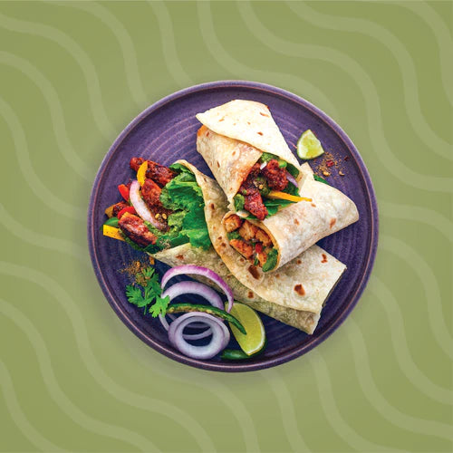 Roll the roti, cut into two and serve with mint chutney.